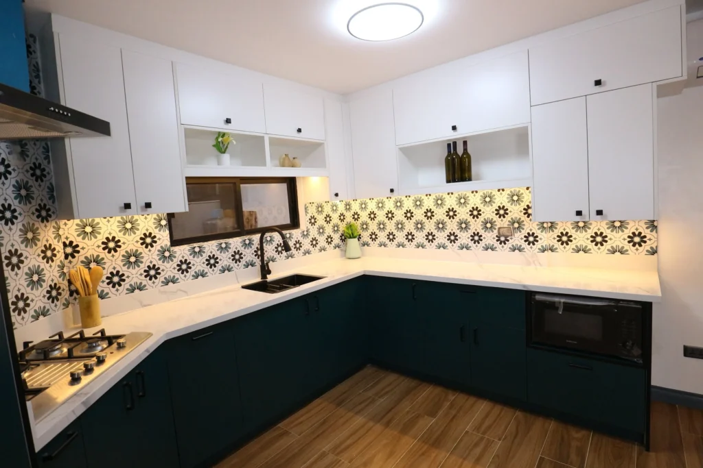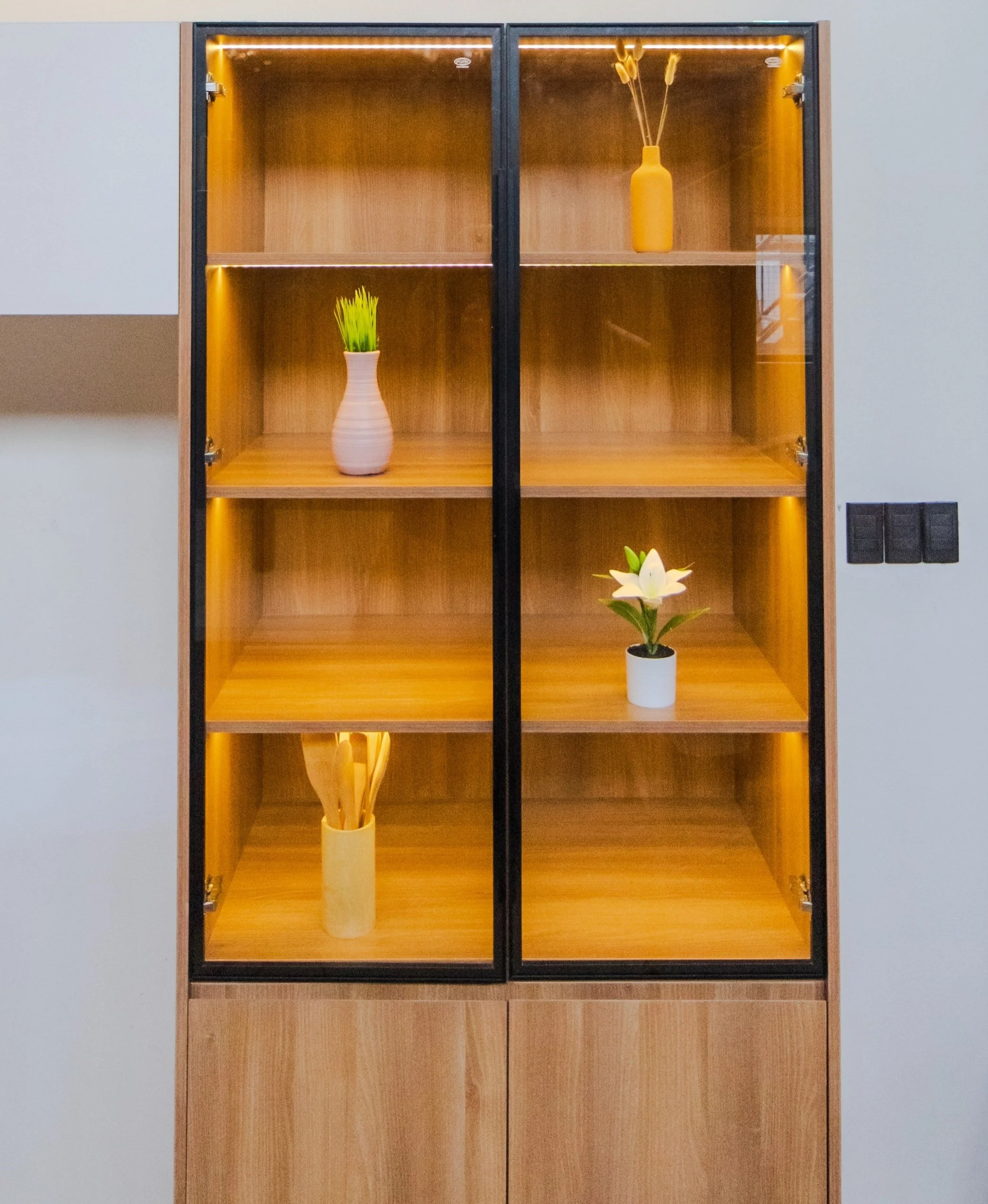 Warm LED lights were strategically placed to highlight the beauty of the materials and add a cozy glow to your culinary haven.